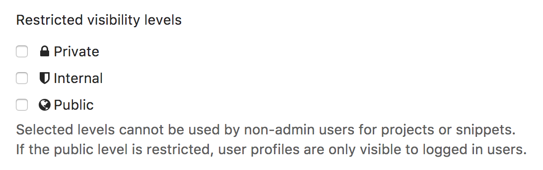 Note: Starting with GitLab 8.6, the group visibility has changed and can be configured the same way as projects. In previous versions, a group's page was always visible to all users.