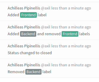 This process can be seen clearly when visiting an issue since with every move to another list the label changes and a system not is recorded.